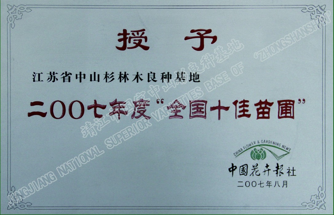 靖江市中山杉林木良種有限公司單位現(xiàn)有職工120人,其中中高級技術人員26人,初級技術人員45人,高級技工45多人,備有多功能灑水車、高空作業(yè)車、挖掘機、草坪噴播機等齊全的園林施工機械,年承接綠化工程100萬平方米以上。公司自成立以來,參與了眾多省內外綠化重點工程的建設,先后完成江陰長江公路大橋、潤揚大橋、南京三橋、蘇州吳中大道、揚州西北線繞城、無錫沿江高速、無錫342省道、滬寧高速、泰高路、寧通高......